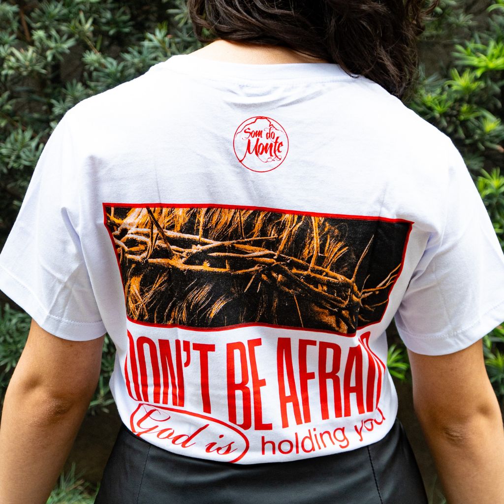 A camiseta “Don’t Be Afraid” (Não Tenha Medo) é inspirada na canção do Frei Gilson, que nos recorda que, mesmo diante das lutas, Deus está conosco. Produzida em tecido leve e confortável, traz uma estampa moderna e cheia de significado, perfeita para o dia a dia ou momentos de evangelização.