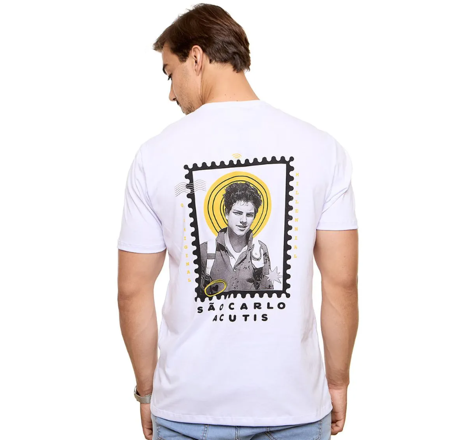 A camiseta São Carlo Acutis traz uma estampa exclusiva inspirada no jovem beato conhecido como o padroeiro da internet. Com um design moderno e cheio de significado, ela expressa o testemunho de um santo que usou a tecnologia para evangelizar e mostrar que a santidade é possível no dia a dia.